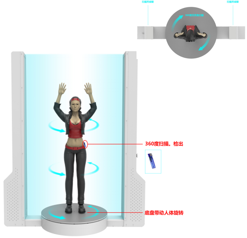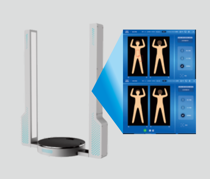 采用高性能三维阵列扫描技术,实现人体表面360°全方位扫描,有效覆盖全身,无角度盲区;采用多角度成像技术,采集的人体图像数据更丰富、品质更高;